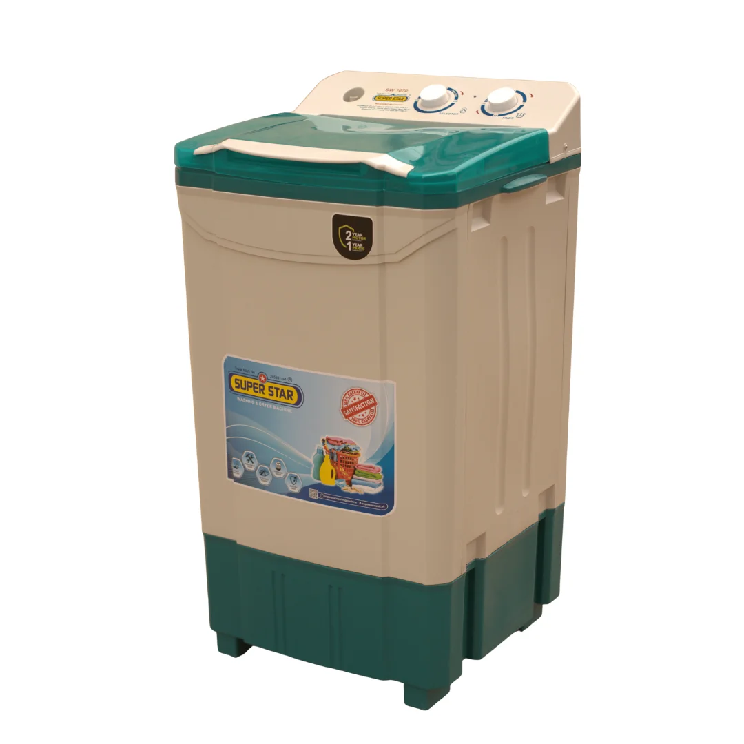 The Super Star SW-2200 Washing Machine is built for users seeking power, durability, and convenience in one appliance. With its twin tub design and strong motor, it handles heavy loads with ease—perfect for busy households. It offers separate wash and spin timers, letting you customize cycles based on fabric type. The rustproof plastic body ensures long-lasting performance. For those who value efficiency and reliability, Super Star delivers a smart laundry solution.