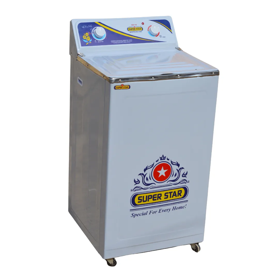 The Super Star SW-114 Washing Machine is an ideal choice for small to medium households looking for reliable and budget-friendly washing. With a twin tub design and a rust-proof plastic body, it ensures long-lasting durability and efficient performance. Its powerful motor delivers strong washing action while keeping energy consumption low. Easy-to-use controls make laundry hassle-free for everyday users. Choose the Super Star SW-114 for an effortless and economical washing solution tailored to your daily needs.